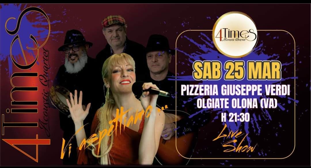 Sabato 25 Marzo 2023 siete tutti invitati alla serata con musica live dei 4 Times, un fantastico quartetto acustico.